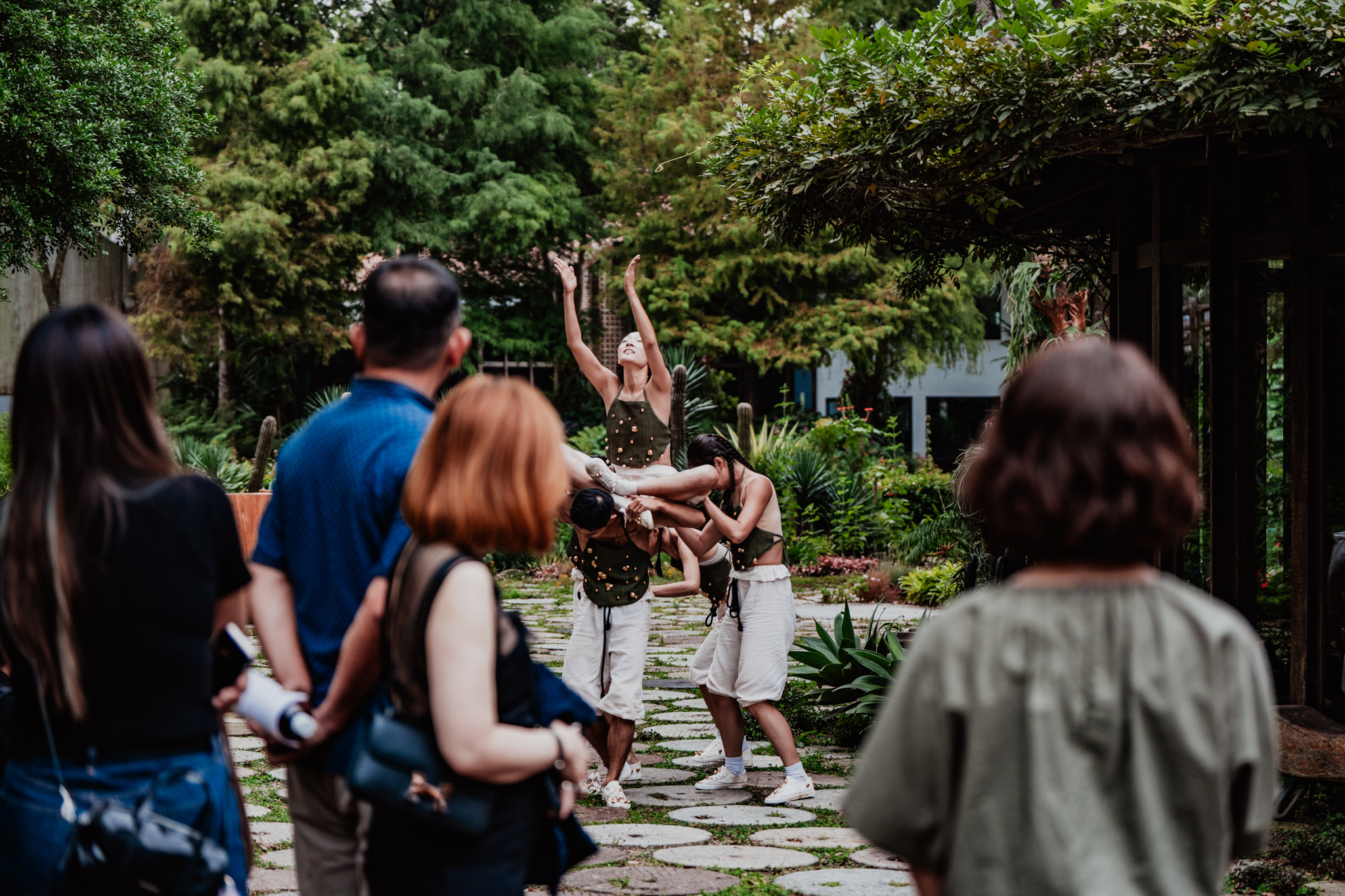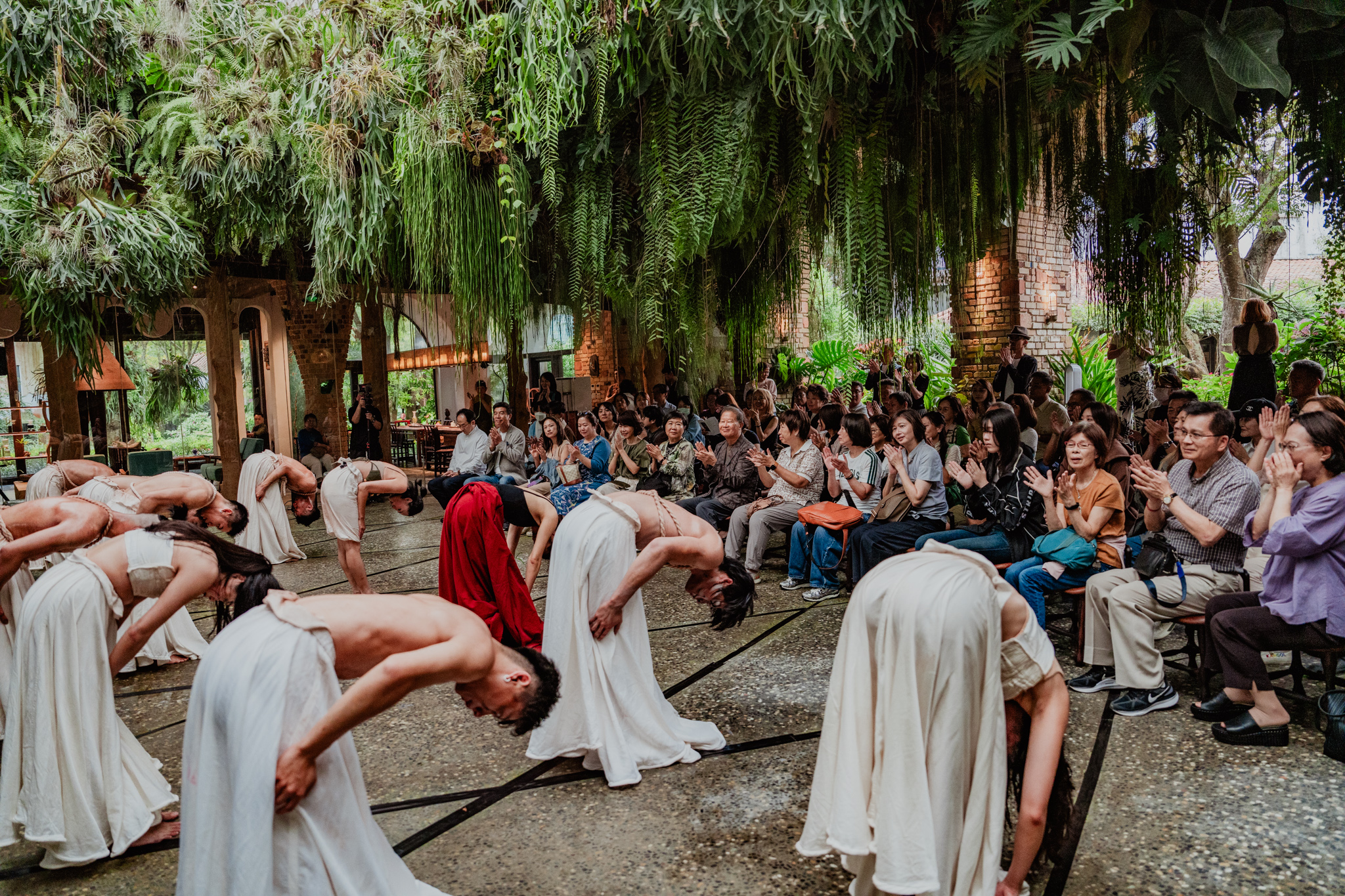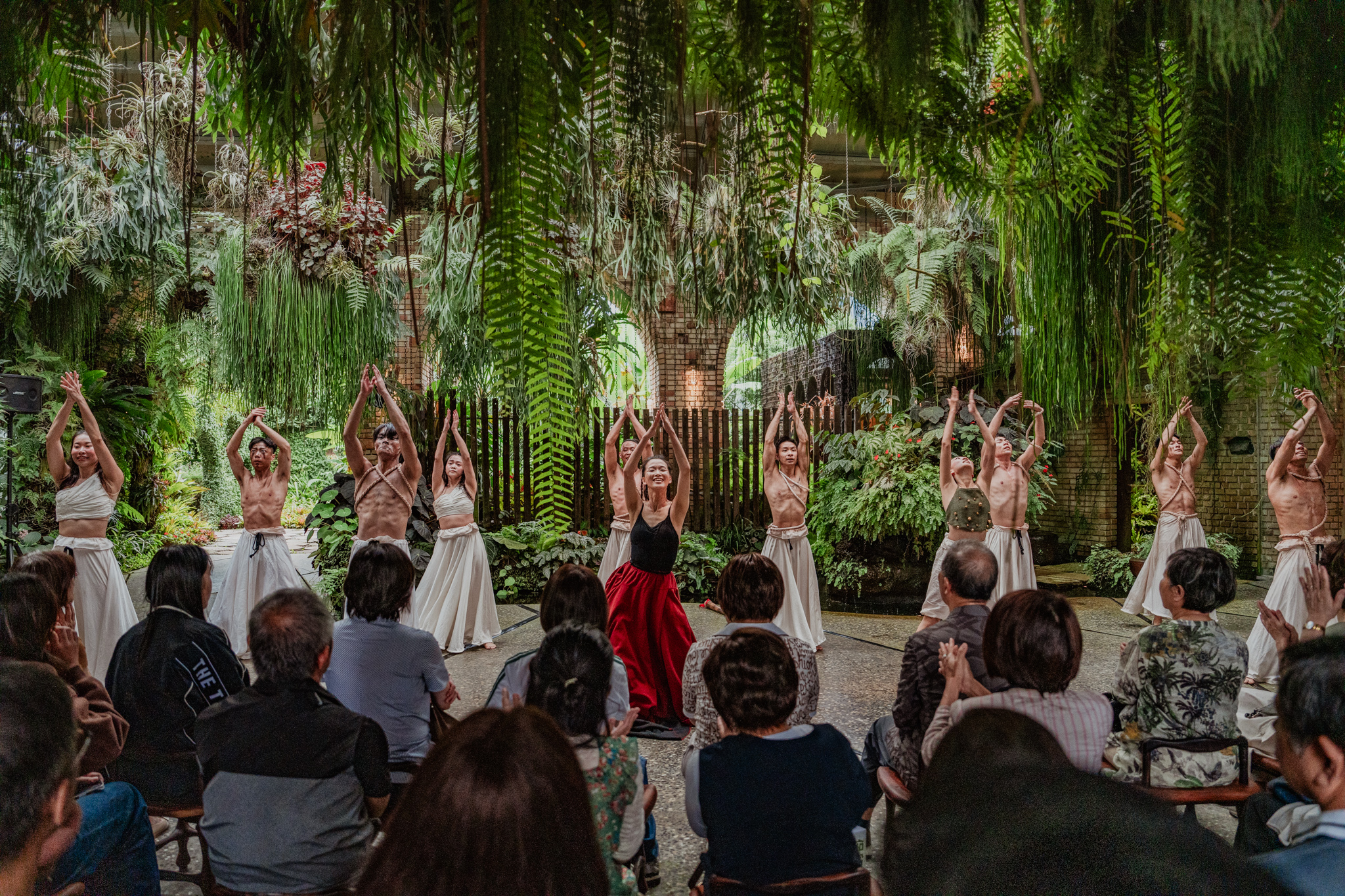 於是,在創辦人謝燕妮、太古踏林秀偉藝術總監與吳采璘團長堅定推動下,以自然大地為背景的【太陽之舞】,終於在櫟莊園美術館的森林實境中,精彩完整呈現。